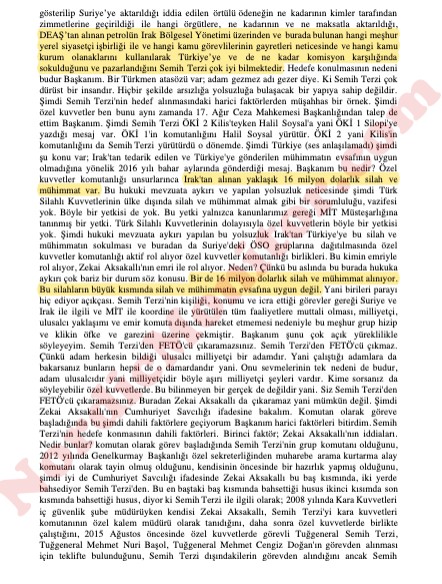 Tuğgeneral Terzi’nin önce helikopterle Silopi’den Diyarbakır’a oradan da uçakla Ankara’ya gelmesine neden izin verildiği ve Özel Kuvvetler Nizamiyesine Aksakallı tarafından sadece Semih Terzi içeriye alınacak şeklinde neden talimatlar verildiği halen cevapsız sorular arasında bulunuyor. Terzi’nin yaralı olarak getirildiği GATA’daki tanık beyanlarına göre oturabilir ve konuşur vaziyetteydi. Kamuoyununda bilinenin aksine alnından değil sırtından vurulmuştu. Terzi’nin ‘GATA’dan sağ çıkmayacak’ talimatı üzerine öldüğü yakın çevresi tarafından iddia diliyor.