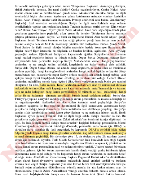 Terzi’nin o gece Aksakallı tarafından defaatle arandığını ve Ankara’ya gelmesi için yoğun bir çapa harcandığını söyleyen yetkili, sözlerini şöyle sürdürdü: “Gün içerisinde birkaç kez acil Ankara’ya gel diye talimat vermiş. Ancak sınır dışı görevinde oldukları için olumlu yanıt verilmemiş. Ancak özel bir uçakla getirebileceklerini söyleyince olur yanıtı almışlar. Ayrıca Ankara’ya getirilen birlik onun birliği değil. Toplama bir birlik oluşturulmuş. Mihrali Atmaca ve benzeri isimler bunlardan birkaçı. Terzi paşanın darbeden kesinlikle haberi yoktu. Olmuş olsaydı kesinlikle Ankara’ya gelmezdi. Zekai paşa onu bilerek ölüme çağırdı.”